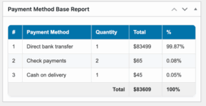 The WooCommerce Payment Method Report plugin provides detailed revenue insights for the current month, categorized by each active payment method. If your store uses multiple payment methods, this plugin helps you easily track and compare their performance.